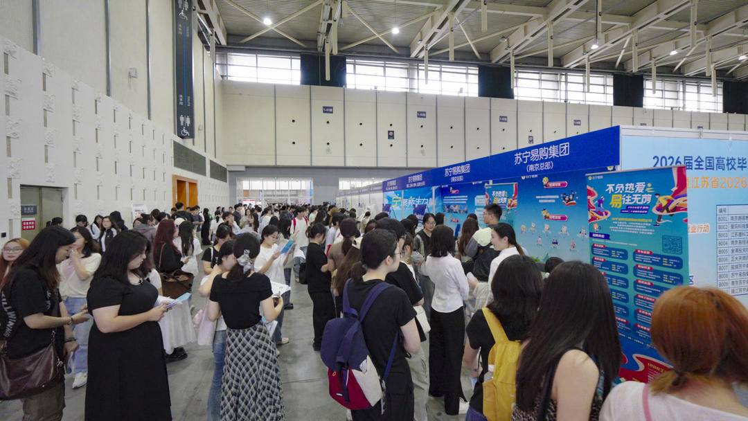 9月27日一早,南京国际博览中心2号馆的门外已经排起了长龙。当天,2026届全国高校毕业生“金秋启航”校园招聘月活动暨江苏省2026届高校毕业生公益供需洽谈会在此举办,这是秋季学期,教育部对接经济大省,面向2026届高校毕业生举办的首场大型供需见面会。1000余家优质企业带来3.2万余个就业岗位,吸引省内外3万余名高校毕业生到现场求职。毕业生当前就业形势如何?扬子晚报/紫牛新闻记者进行了探访。